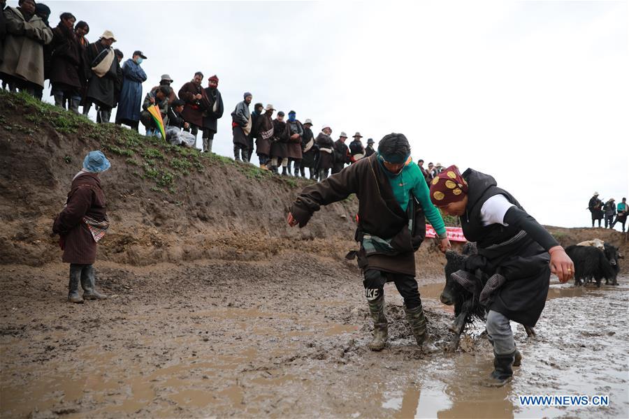 Local herdsmen lead their lost and found cattle back at the pasture Qianyangya in Koce Township of Gannan Tibetan Autonomous Prefecture, northwest China's Gansu Province, July 25, 2020. Since the 1980s, the pasture in Koce Township has been used as an area to reunite lost and found livestock with their owners. Once a year, local herdsmen gather here for one day to bring the livestock they have found while herding and look for their lost ones by identifying the body marks on cattle or sheep. The livestock can be brought home when their ownership is confirmed by most attendees. So far, over 20,000 lost and found livestock have returned to their owners. (Xinhua/Du Zheyu)