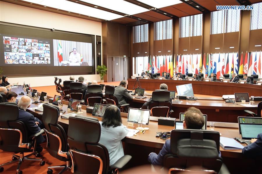 The fifth annual meeting of the Asian Infrastructure Investment Bank (AIIB) is held via video link on July 28, 2020. (Xinhua/Liu Bin)