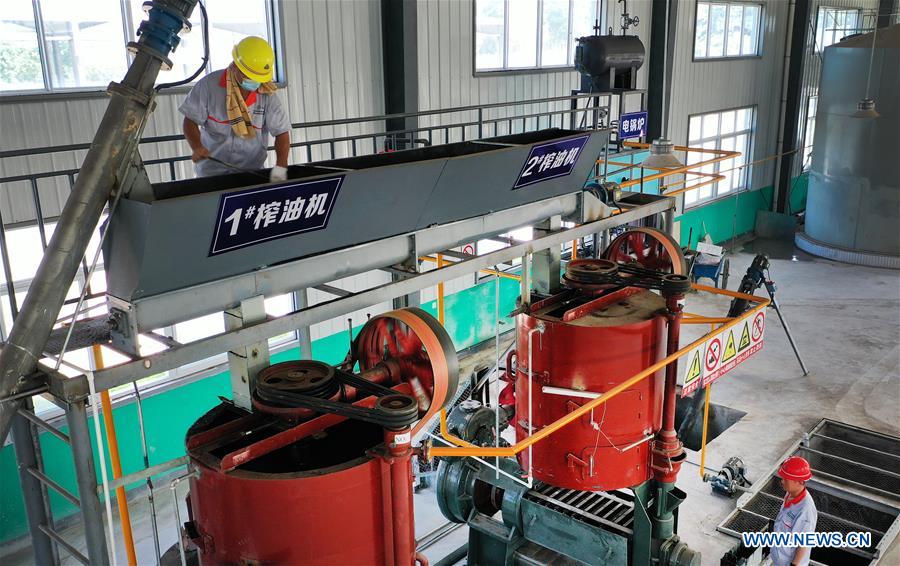 Staff members process Chinese prickly ashes at a factory in Huazhou District of Weinan City, northwest China's Shaanxi Province, July 30, 2020. Local authorities encourage Chinese prickly ash planting in Huazhou District and help farmers raise their income. At present, the total area of Chinese prickly ash fields stands at 101,000 mu (about 6,733 hectares), and the annual output reaches 7,300 tonnes. (Xinhua/Tao Ming)
