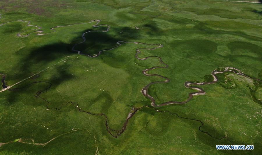 Aerial photo taken on July 30, 2020 shows the view of Jinyintan grasslands in Haibei Tibetan Autonomous Prefecture, northwest China's Qinghai Province. (Xinhua/Zhang Hongxiang)