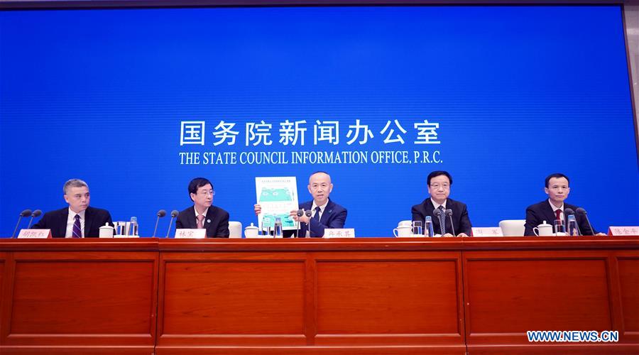 Spokesperson of China's BeiDou Navigation Satellite System Ran Chengqi(C) speaks during a press conference on the system held by the State Council Information Office in Beijing, capital of China, Aug. 3, 2020. (Xinhua/Pan Xu)