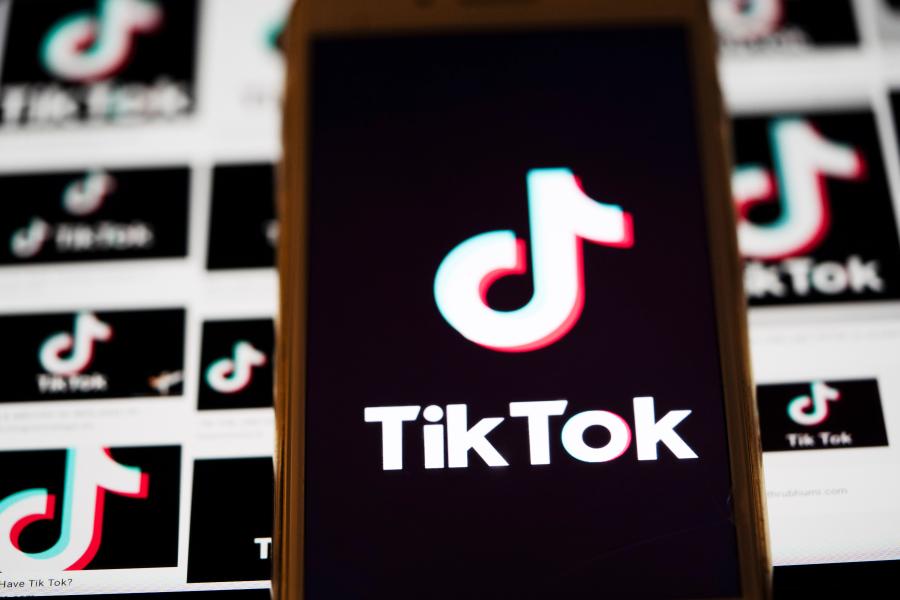 The logo of TikTok is displayed on the screen of a smartphone on a computer screen background in Arlington, Virginia, the United States, Aug. 3, 2020. (Xinhua/Liu Jie)