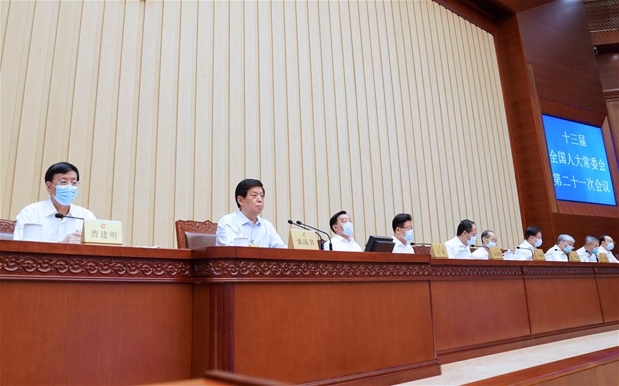 Li Zhanshu, chairman of the National People's Congress (NPC) Standing Committee, presides over the first plenary meeting of the 21st session of the 13th NPC Standing Committee at the Great Hall of the People in Beijing, capital of China, Aug. 8, 2020. (Xinhua/Zhang Ling)