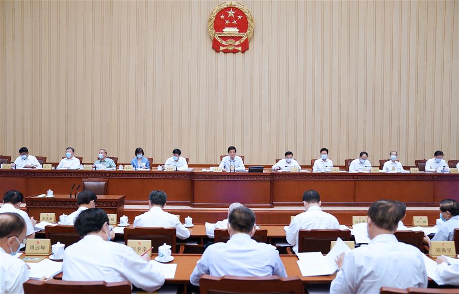 Li Zhanshu, chairman of the National People's Congress (NPC) Standing Committee, presides over the first plenary meeting of the 21st session of the 13th NPC Standing Committee at the Great Hall of the People in Beijing, capital of China, Aug. 8, 2020. (Xinhua/Zhang Ling)
