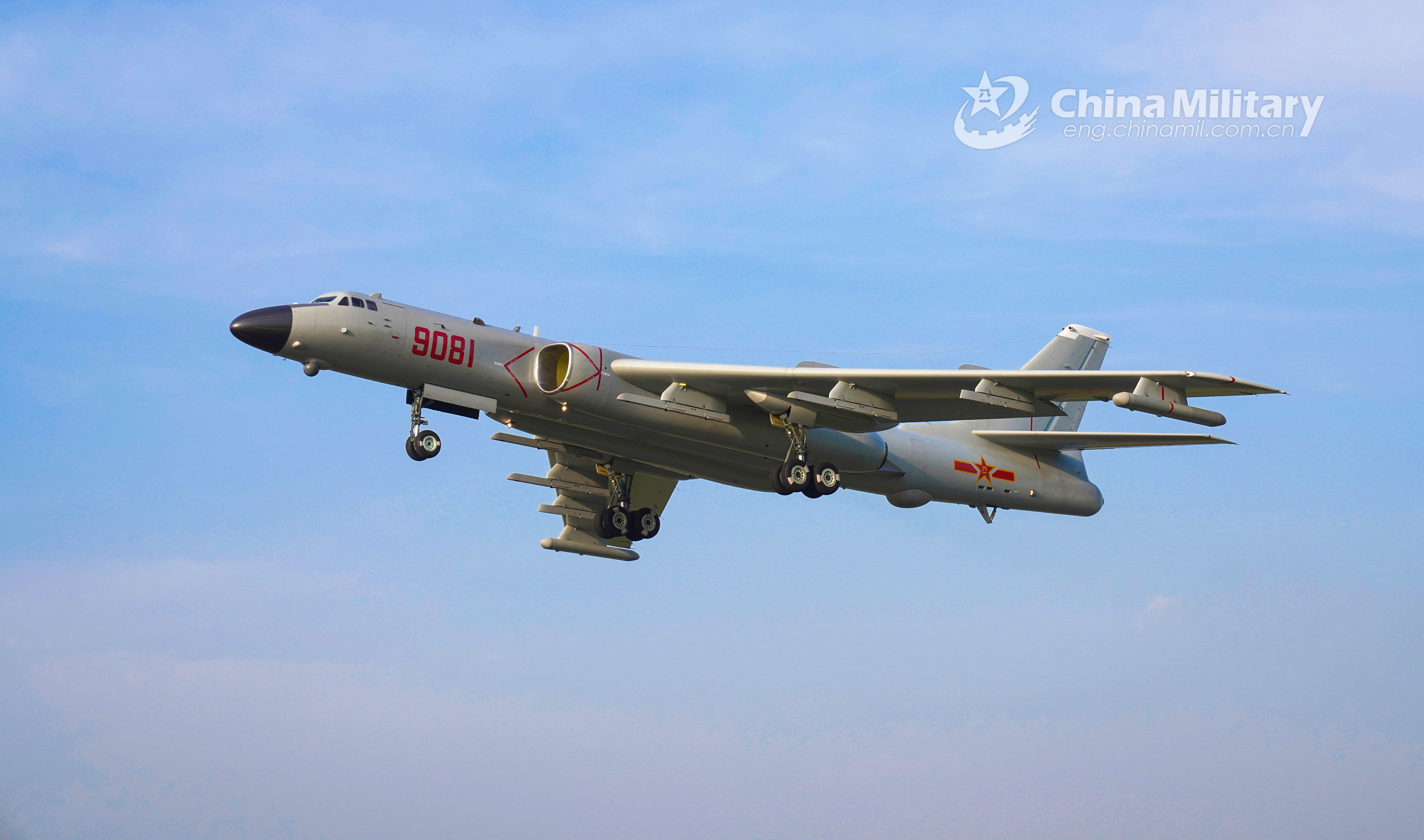 A H-6 strategic bomber attached to a bomber regiment of the naval aviation force under the PLA Southern Theater Command soars into the air during a recent realistic flight training exercise. (eng.chinamil.com.cn/Photo by Gao Hongwei)