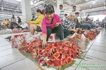 Since late July, large quantities of wild mushrooms have been on the market in Simao District, Pu’er City. In the Wuyi Market Fair, large quantities of wild mushrooms including Russula vinosa Lindblad, Lactarius volemus, Boletus and others are provided for the public to choose.