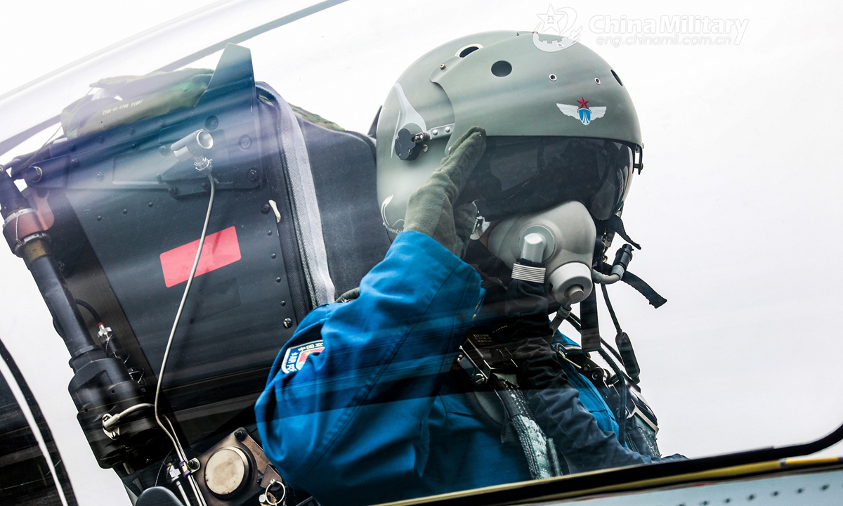 A pilot assigned to an aviation brigade of the air force under the PLA Southern Theater Command gets well-prepared during a flight mission in early August, 2020. (eng.chinamil.com.cn/Photo by Wang Guoyun)