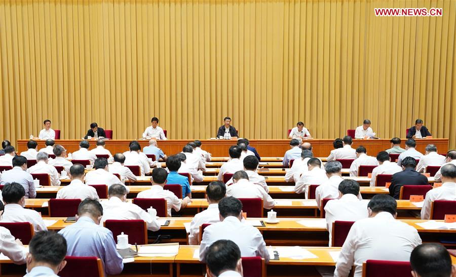 Chinese President Xi Jinping, also general secretary of the Communist Party of China Central Committee and chairman of the Central Military Commission, speaks during a high-level meeting on Tibet work in Beijing, capital of China. The meeting was held in Beijing from Aug. 28 to 29, 2020. (Xinhua/Rao Aimin)