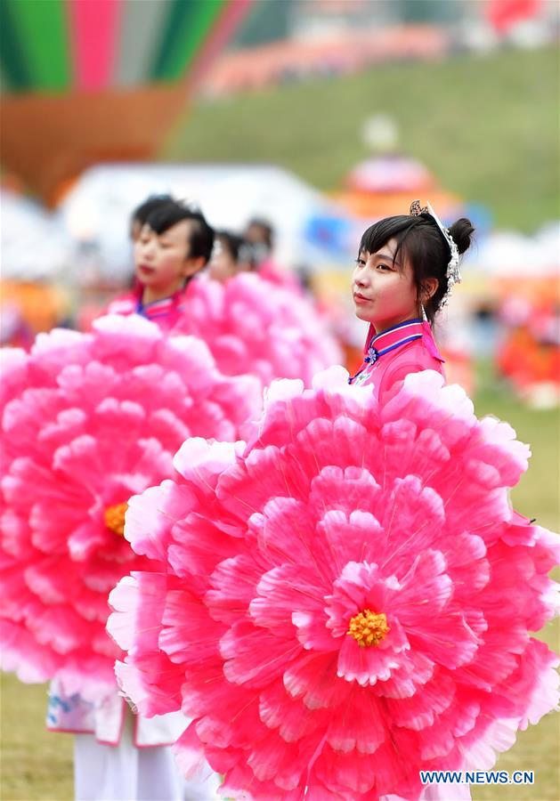 Actresses perform dance during the opening ceremony of the 20th Shambhala Tourism Festival in Gannan Tibetan Autonomous Prefecture, northwest China's Gansu Province, Aug. 31, 2020. The 20th Shambhala Tourism Festival kicked off at Dangzhou Grassland here on Monday. (Xinhua/Chen Bin)