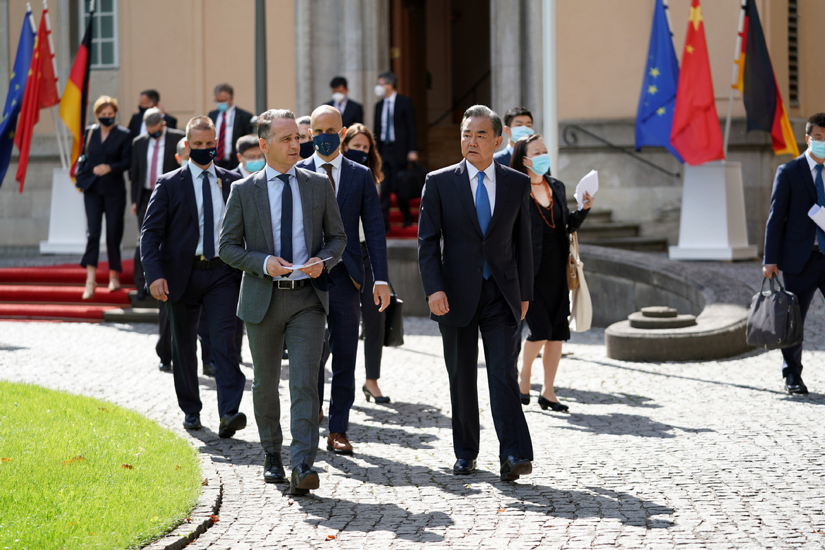 Chinese State Councilor and Foreign Minister Wang Yi walks with German Foreign Minister Heiko Maas to a press conference in Berlin, Germany, Sept 1, 2020. [Photo/Xinhua]