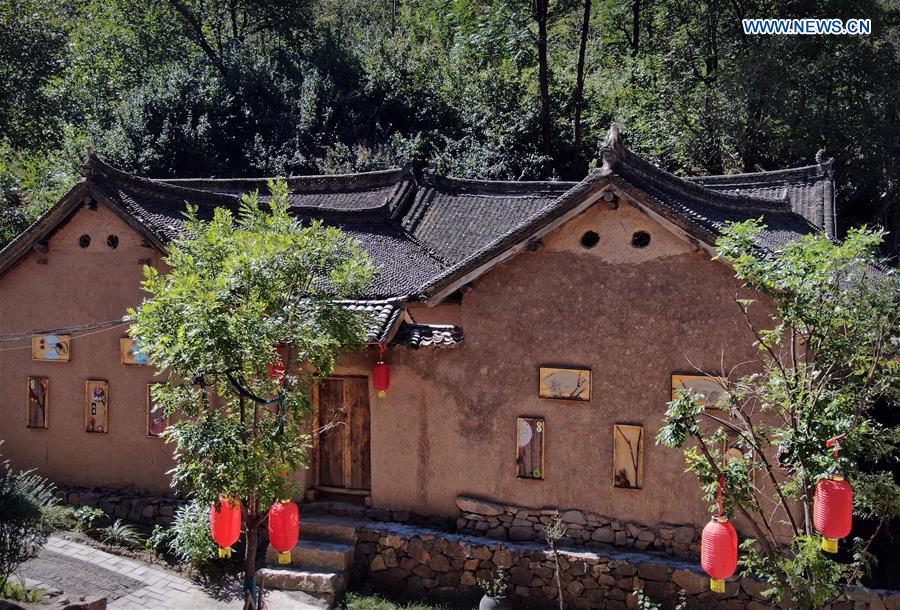 Aerial photo taken on Sept. 2, 2020 shows a view of Dawanggou Village in Deting Town of Songxian County, Luoyang City, central China's Henan Province. Dawanggou Village, located in a mountainous area, used to be an impoverished village. In recent years, the local government has made efforts in improving the living conditions of the villagers, carrying out relocation and renovation work. By improving the appearance of the village, rural tourism has been developed, which helps people here get rid of poverty without working far away from home. (Xinhua/Li An)