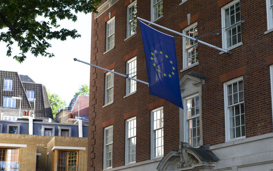 Photo taken on May 28, 2020 shows the European Parliament Liaison Office in the United Kingdom in London, Britain. (Xinhua/Han Yan)