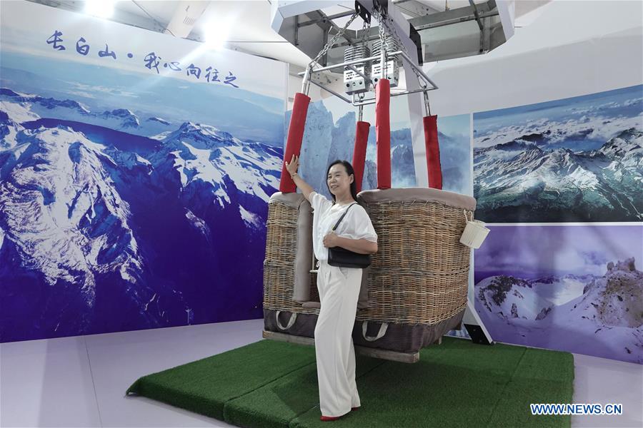 A woman poses for photos at the Winter Sports Exhibition Hall of the 2020 China International Fair for Trade in Services (CIFTIS) in Beijing, capital of China, Sept. 6, 2020. The CIFTIS runs on Sept. 4-9 in Beijing. (Xinhua/Cai Yang)