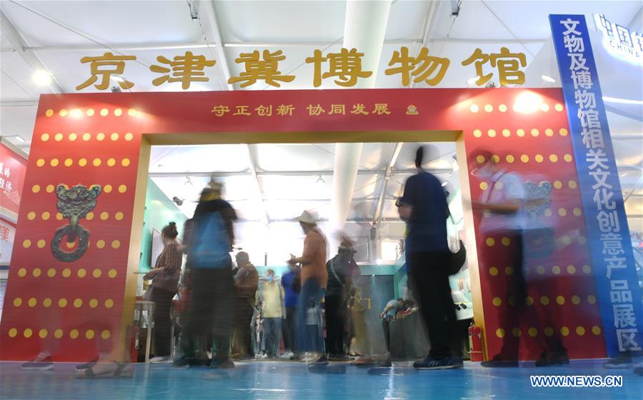 People visit the Beijing-Tianjin-Hebei culture collaborative development exhibition area in Cultural Services Exhibition of the 2020 China International Fair for Trade in Services (CIFTIS) in Beijing, capital of China, Sept. 7, 2020. The CIFTIS runs on Sept. 4-9 in Beijing. (Xinhua/Lu Peng)