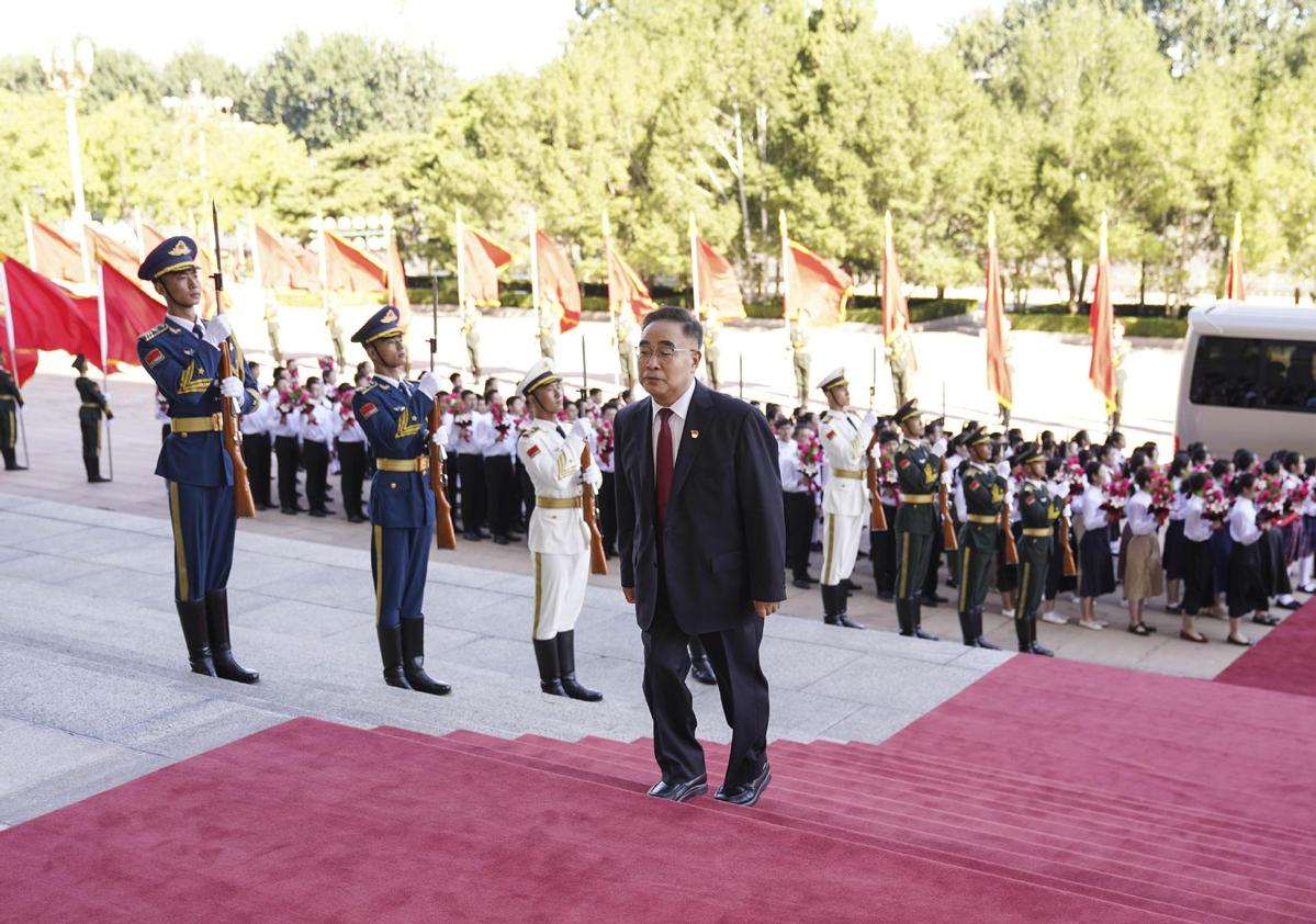 Zhang Boli, recipient of the national honorary title, "the People's Hero," arrives at the Great Hall of the People in Beijing, Sept 8, 2020. [Photo/Xinhua]