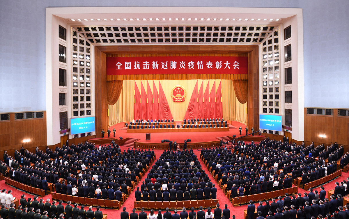 China holds a meeting to commend role models in the country's fight against the COVID-19 epidemic in Beijing on Tuesday morning, Sept 8, 2020. [Photo/Xinhua]