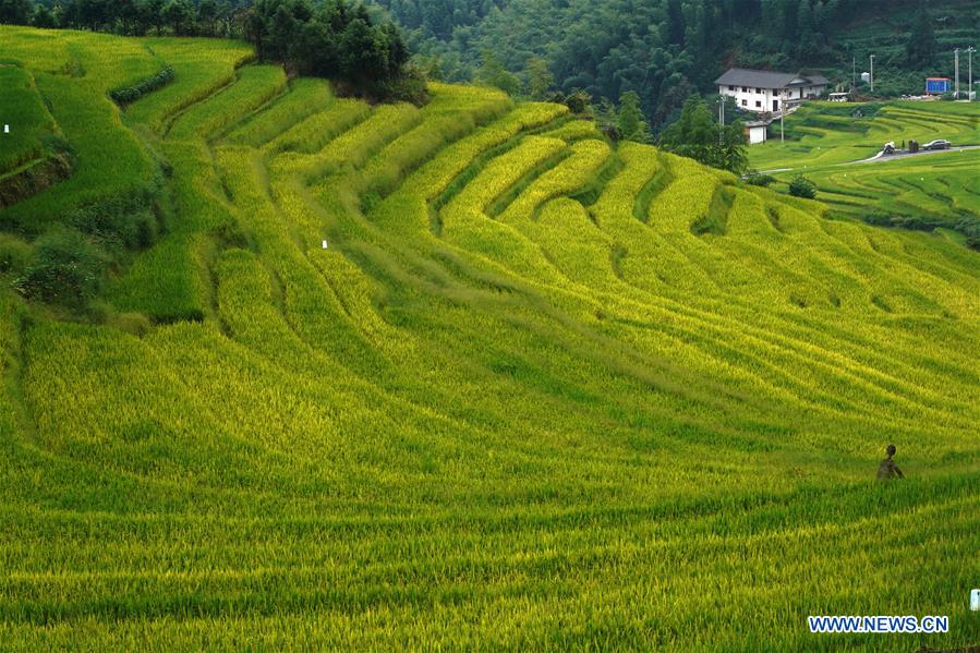 Photo taken on Sept. 10, 2020 shows terraced fields in Shangbao Township of Chongyi County, east China's Jiangxi Province. (Xinhua/Wan Xiang)