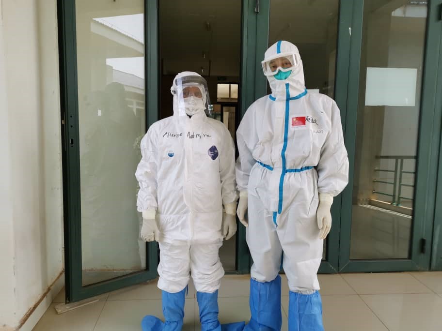 Chinese team doctors wear their personal protective equipment, ready to help Sierra Leone fight COVID-19