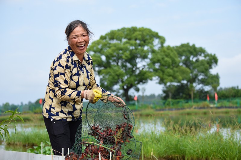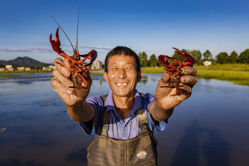 In Duchang, Jiangxi, the rice-crayfish farming mode is bringing an net income of 3,000 yuan ($439) per mu (667 square meters) to local farmers. Compared with rice planting, the output of the mixed mode at least doubled. The rice-crayfish farming mode has already become a new path of poverty alleviation for local farmers.