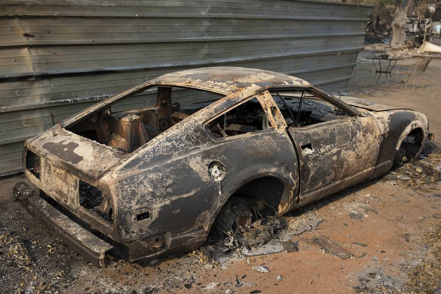 Photo taken on Aug. 28, 2020 shows the wreckage at the site where a wildfire swept through in Vacaville of Solano County, Northern California, the United States. (Photo by Li Jianguo/Xinhua)