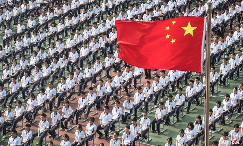 Students take part in the opening ceremony of a new semester at Wuhan High School in Wuhan, capital of central China's Hubei Province, Sept. 1, 2020. (Xinhua/Xiao Yijiu)