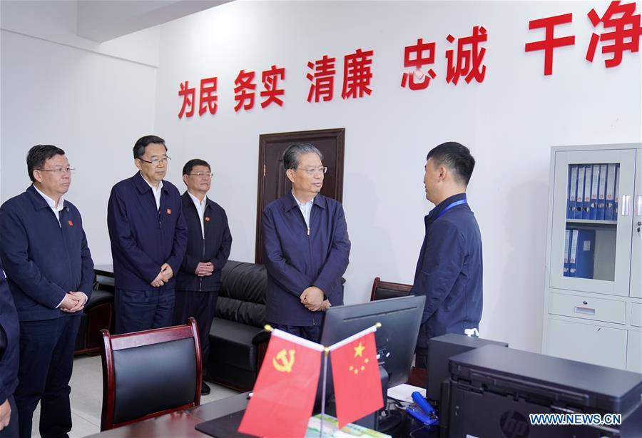 Zhao Leji, a member of the Standing Committee of the Political Bureau of the Communist Party of China (CPC) Central Committee and secretary of the CPC Central Commission for Discipline Inspection, learns about disciplinary inspection work in Ertang Township of Weining County, Bijie City, southwest China's Guizhou Province, Sept. 14, 2020. Zhao made an inspection tour in Guizhou from Sunday to Wednesday. (Xinhua/Zhang Ling)