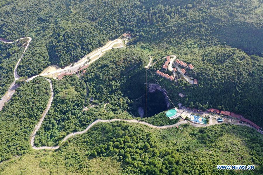 Aerial photo taken on Sept. 15, 2020 shows roads winding through the mountains in Dongmen Township of Luocheng Mulao Autonomous County, south China's Guangxi Zhuang Autonomous Region. In recent years, local government has increased investment in the construction of transportation infrastructure to help local people shake off poverty. (Xinhua/Lu Boan)