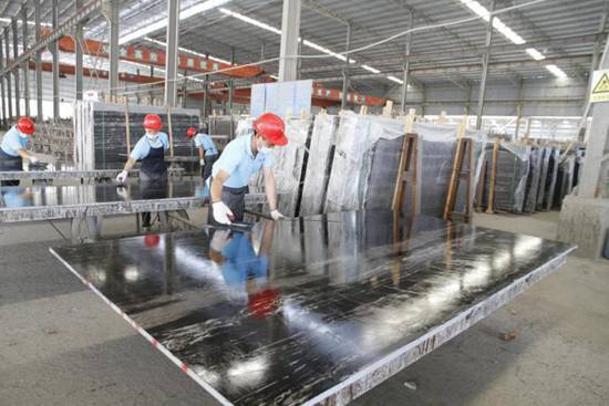 Employees work at a marble processing plant in Xincheng county, south China’s Guangxi Zhuang Autonomous Region. (Photo/Zhu Xiaoling)