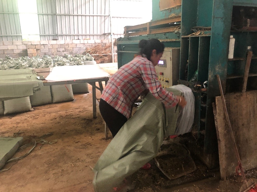 A farmer works at a forage grass processing plant in Dongmiao Township of Du'an Yao Autonomous County, south China's Guangxi Zhuang Autonomous Region. (People's Daily Online/Yan Lizheng)