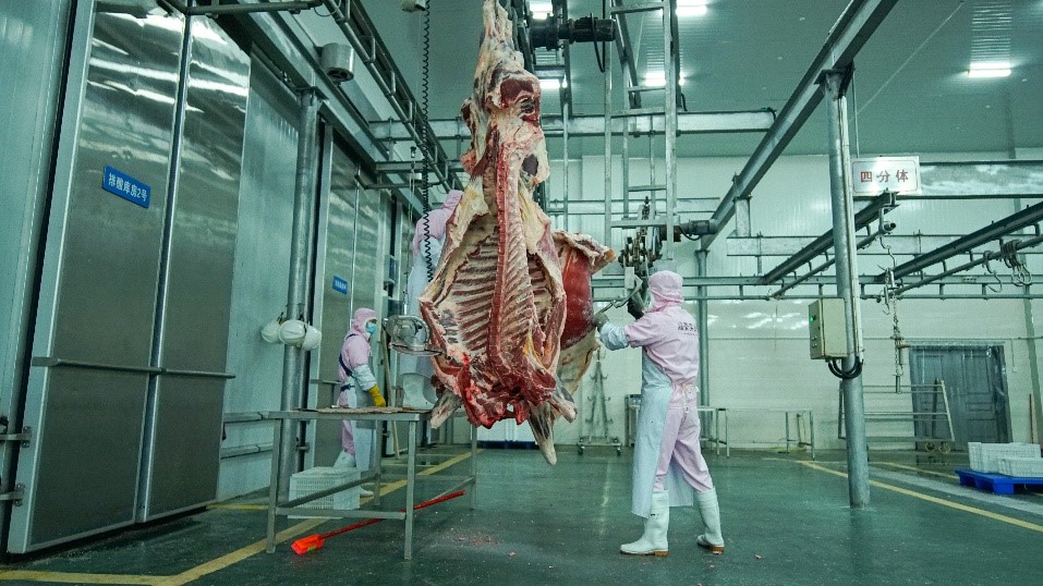 Guangxi Du’an Jiahao Ind’l Co., Ltd, a company that focuses on large-scale cattle raising and processing, invested 200 million yuan in building an ecological cattle breeding demonstration park and 350 million yuan in the construction of a cold chain warehousing and logistics center, seamlessly connecting cattle breeding, slaughter, processing, and cold chain, and selling beef products through cold chain to all parts of China.