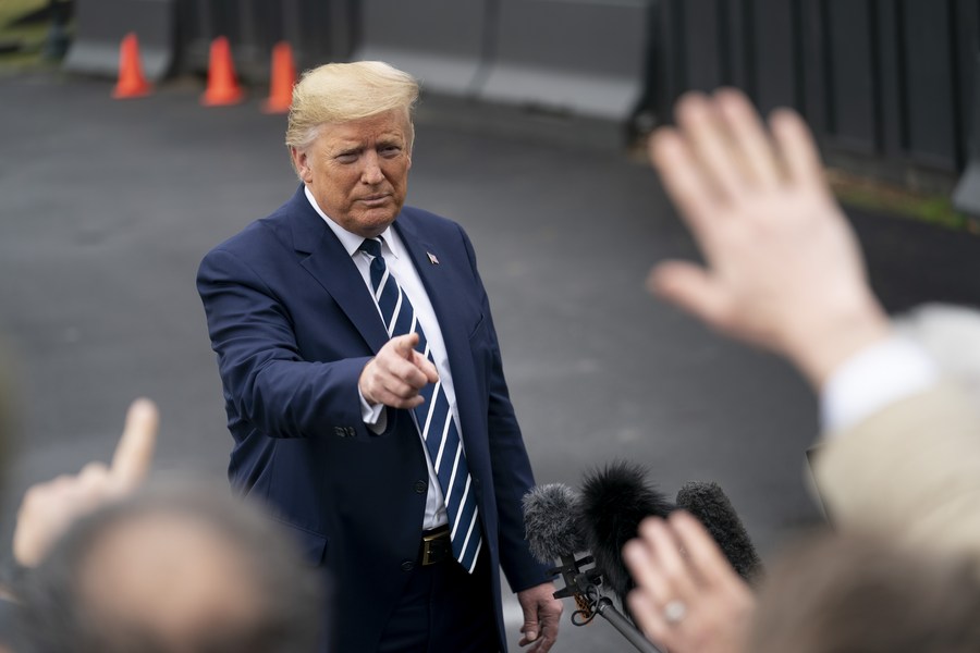 U.S. President Donald Trump speaks to reporters before leaving the White House in Washington D.C., the United States, on March 3, 2020. (Xinhua/Liu Jie)