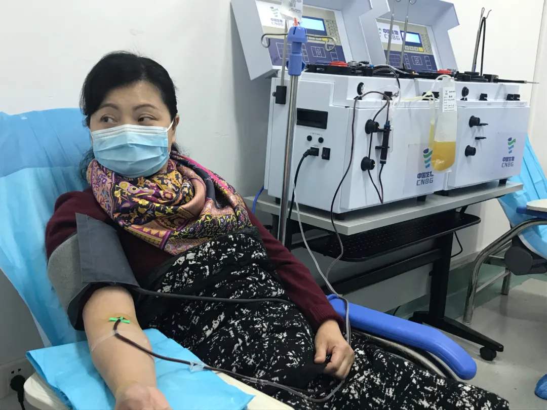 Cheng Lin donates 400ml of blood plasma on Feb. 18 after recovering from the novel coronavirus.