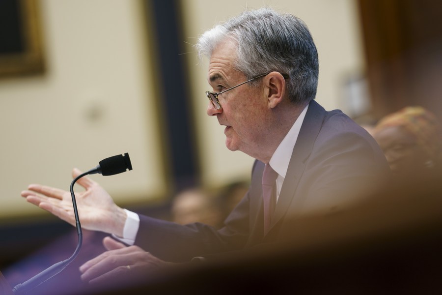 U.S. Federal Reserve Chairman Jerome Powell testifies before the House Financial Services Committee during the Monetary Policy and the State of the Economy hearing on Capitol Hill in Washington D.C., the United States, on Feb. 11, 2020. (Photo by Ting Shen/Xinhua)
