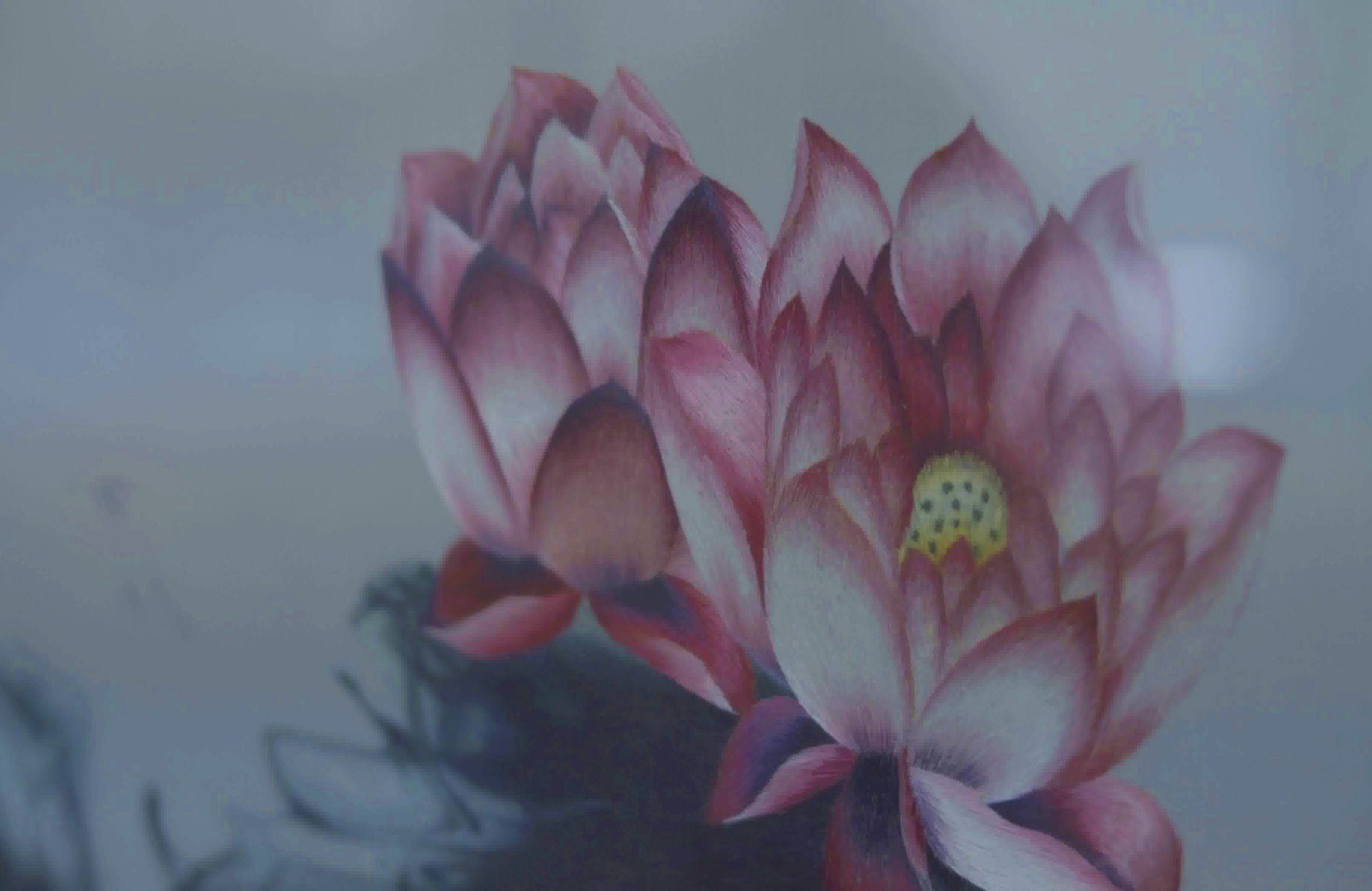 “Lotus and Ink”, a double-sided heterochromatic embroidery work, was designed by Wang Shi, and was completed mostly by his mother, Shi Chengquan. Shi is the third generation inheritor of the Shi family Ou embroidery skills and also a national-level inheritor of the craft.