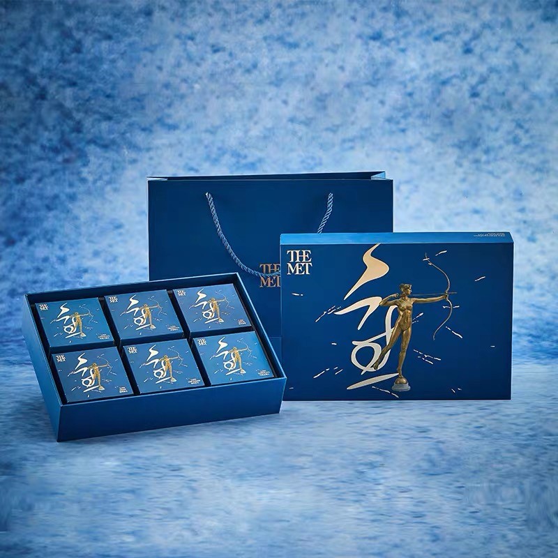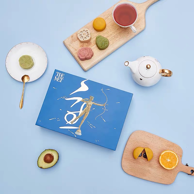 Different from its western style package, the Metropolitan Museum of Art mooncakes are designed in the form of lotus and moon, both are lucky and propitious signs in Chinese culture. The cake has six unique flavors with a combination of traditional Chinese and Western dessert: lime cheese, grape candy, osmanthus candy, liquid chocolate and soy milk mochi.
