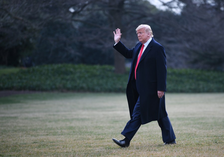 U.S. President Donald Trump leaves for Florida at the South Lawn of the White House in Washington D.C., the United States, on Jan. 23, 2020. (Xinhua/Liu Jie)