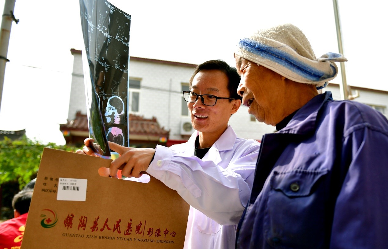 A medical worker explains the state of illness for a patient from Nansundiandong village at a hospital in Guantao county, Handan, north China’s Hebei province, Oct. 6. (People’s Daily Online/ Hu Qinghua)