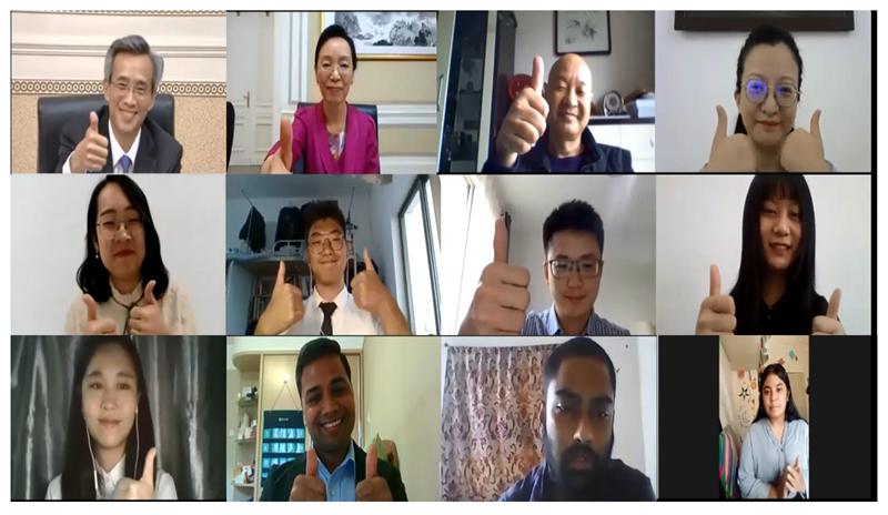 Chinese and Indian teachers and students attend an online event on Oct. 10 to commemorate the 110th birth anniversary of Indian doctor Dwarkanath Kotnis. (Photo provided by CPAFFC)