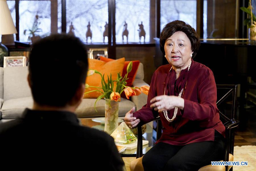 Retired Chinese American entrepreneur Shirley Young speaks during an interview at her apartment in New York, the United States, March 6, 2020. When it comes to building cultural bridges between the United States and China through music and art, retired Chinese American entrepreneur Shirley Young's passionate energy is so appealing that it seems she is not aged. (Xinhua/Wang Ying)