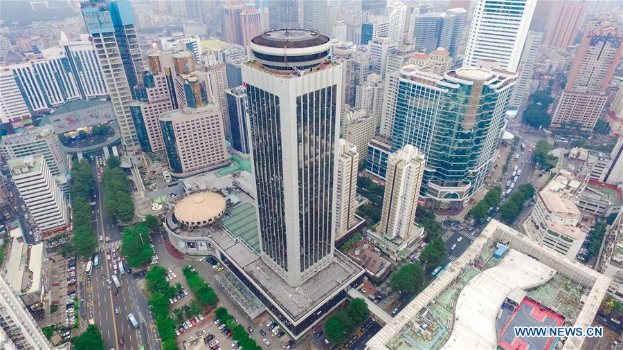 Aerial photo taken on April 26, 2018 shows the Shenzhen International Trade Centre Building, on which the construction group set a record of building one story in three days in 1980s, in Luohu District of Shenzhen, south China's Guangdong Province. Known as a paragon of opening-up and development, Shenzhen in Guangdong Province is one of China's earliest special economic zones. Starting from a small town, it has developed into a key economic hub in the past 40 years. (Xinhua/Mao Siqian)