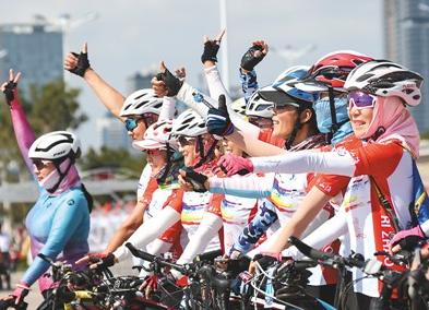 A group of cyclists are ready to set off in Rizhao, east China’s Shandong province. (Photo/Xinhua)