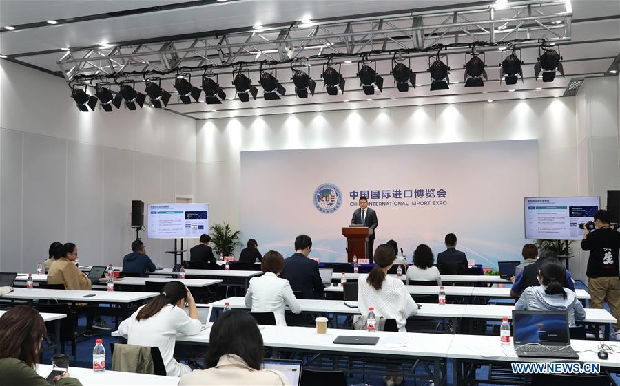 A delegate from Dun & Bradstreet (D&B) Company introduces the company's plan for attending the 3rd China International Import Expo (CIIE) during the publicity conference of the Trade In Services exhibition area at the National Exhibition and Convention Center (Shanghai) in Shanghai, east China, Oct. 19, 2020. The 3rd CIIE will be held from Nov. 5 to 10 in Shanghai this year. (Xinhua/Fang Zhe)