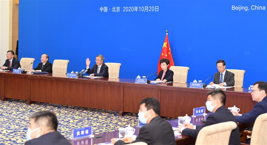 Chinese Vice Premier Hu Chunhua meets with a business delegation from the United States via video link in Beijing, capital of China, Oct. 20, 2020. The delegation was led by Chairman of the U.S.-China Business Council Tom Linebarger. (Xinhua/Yue Yuewei)
