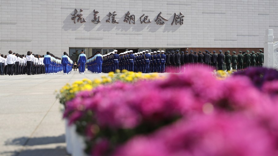 Representatives from all walks of life participate in the opening ceremony of the Memorial Hall of the War to Resist U.S. Aggression and Aid Korea, in Dandong, northeast China's Liaoning Province, Sept. 19, 2020. (Xinhua/Yang Qing)