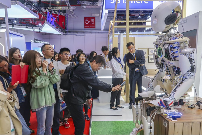 Photo taken on Nov. 10, 2019, shows visitors watch a robot exhibited at the 2nd China International Import Expo (CIIE). (People's Daily Online/Sun Zhifang)
