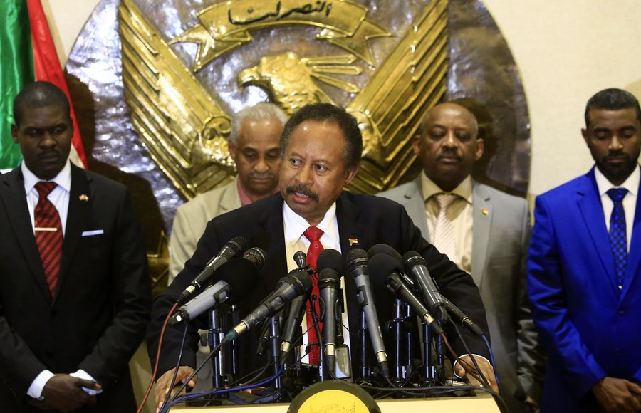 Sudanese Prime Minister Abdalla Hamdok addresses a press conference at the Khartoum airport upon return from Washington on Dec. 8, 2019. (Xinhua/Mohamed Khidir)