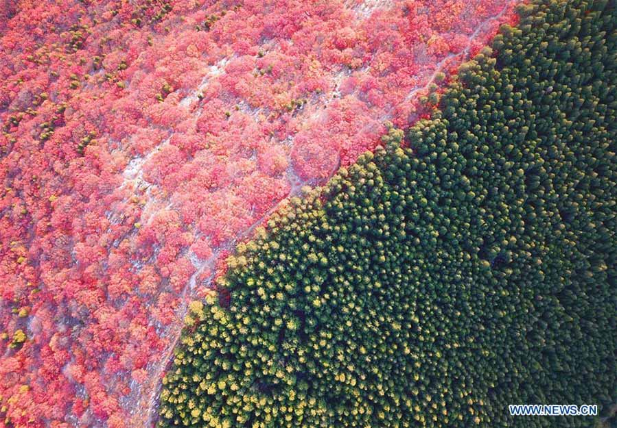 Aerial photo taken on Oct. 31, 2018 shows the scenery of Xiezi Mountain in Jinan, capital city of east China's Shandong Province. (Xinhua/Zhu Zheng)