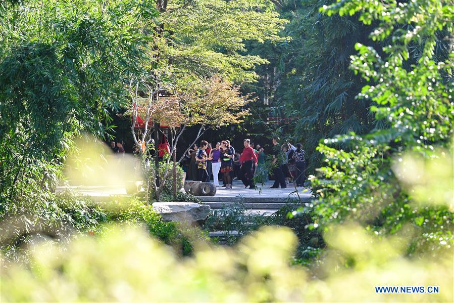People do morning exercises at Chuanzhu Park in Fuzhou, southeast China's Fujian Province, Oct. 27, 2020. (Xinhua/Lin Shanchuan)