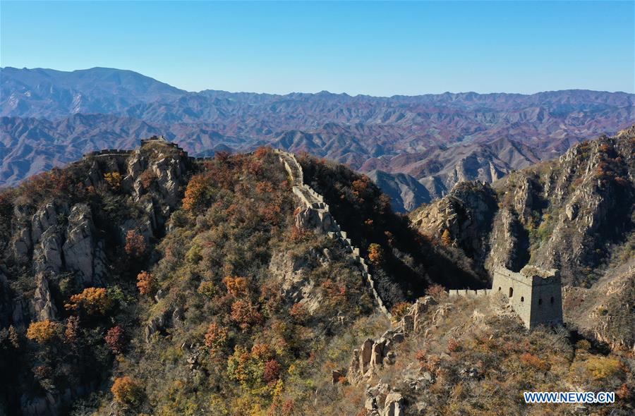 Aerial photo taken on Oct. 27, 2020 shows a view of the Banchangyu Great Wall in Qinhuangdao, north China's Hebei Province. (Xinhua/Yang Shiyao)