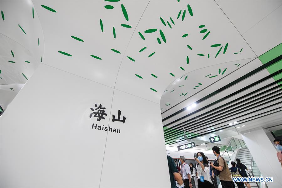 Passengers visit Haishan Station of Shenzhen Subway Line 8 before its launch in Shenzhen, south China's Guangdong Province, Oct. 28, 2020. Four new sections of subway went into operation in Shenzhen on Wednesday, extending the total length of the city's metro system to 411 kilometers. (Xinhua/Mao Siqian)